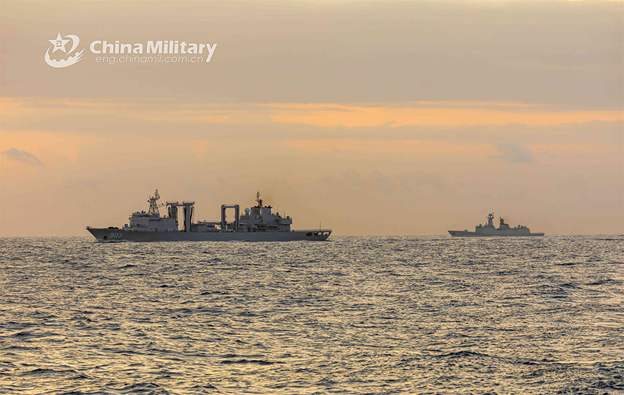 Vessels attached to the 42nd Chinese naval escort taskforce steam in formation in the waters of the Gulf of Aden during a maneuvering exercise in early January 2023. The exercise aimed to hone the taskforce’s capabilities of commanding and maneuvering vessels. (eng.chinamil.com.cn/Photo by Wang Qing)