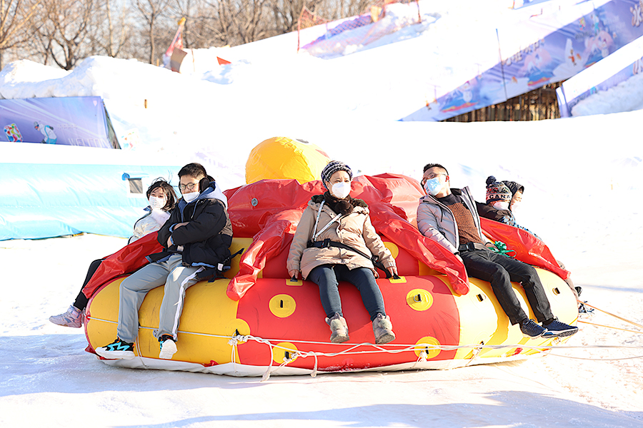 Locals enjoy the ice and snow at the Beijing Water Cube Blizzard Carnival on Jan 9, 2023. [PHOTO by FENG YONGBIN/CHINA DAILY]
