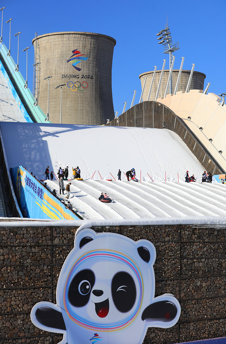 People experience skiing at the Beijing Shougang Ski Jumping Platform on January 8, 2023. [PHOTO by ZHU XINGXIN/CHINA DAILY]