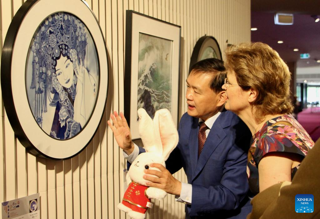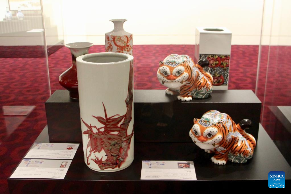 This photo taken on Jan. 28, 2023 shows ceramic artwork displayed during the "China Today" arts week in Adelaide, Australia. The "China Today" arts week was launched in Adelaide, the capital city of South Australia, on Saturday in celebration of the 50th anniversary of the establishment of diplomatic relations between China and Australia. (Photo by Lyu Wei/Xinhua)