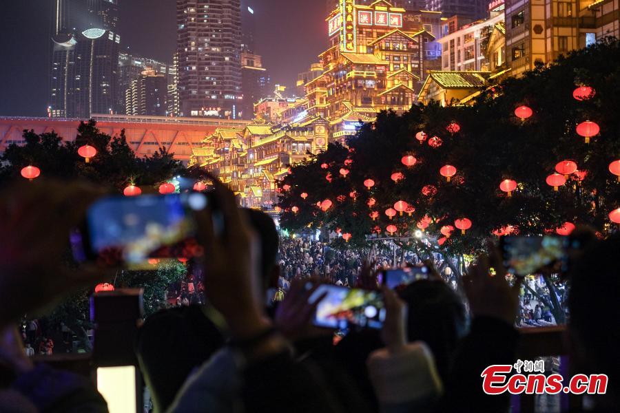 Night view of Hongya Cave draws tourists to Chongqing (4)