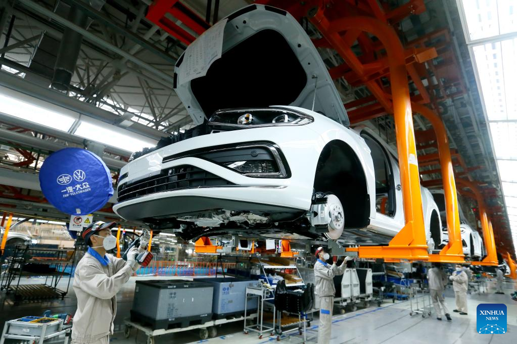 Staff members work at a workshop of an auto manufacturing enterprise in Qingdao, east China's Shandong Province, Jan. 28, 2023. Factories and companies across China resumed work after the Spring Festival holiday. (Photo by Zhang Jingang/Xinhua)