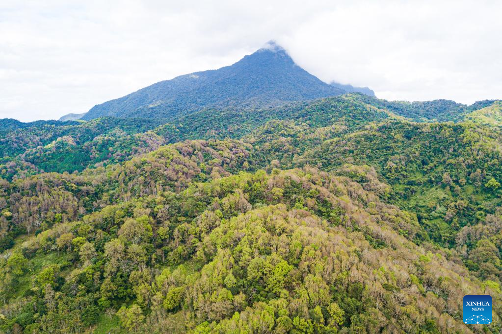 This aerial photo taken on Jan. 27, 2023 shows the Wuzhishan section of the Hainan Tropical Rainforest National Park in Wuzhishan City, south China's Hainan Province. (Xinhua/Pu Xiaoxu)