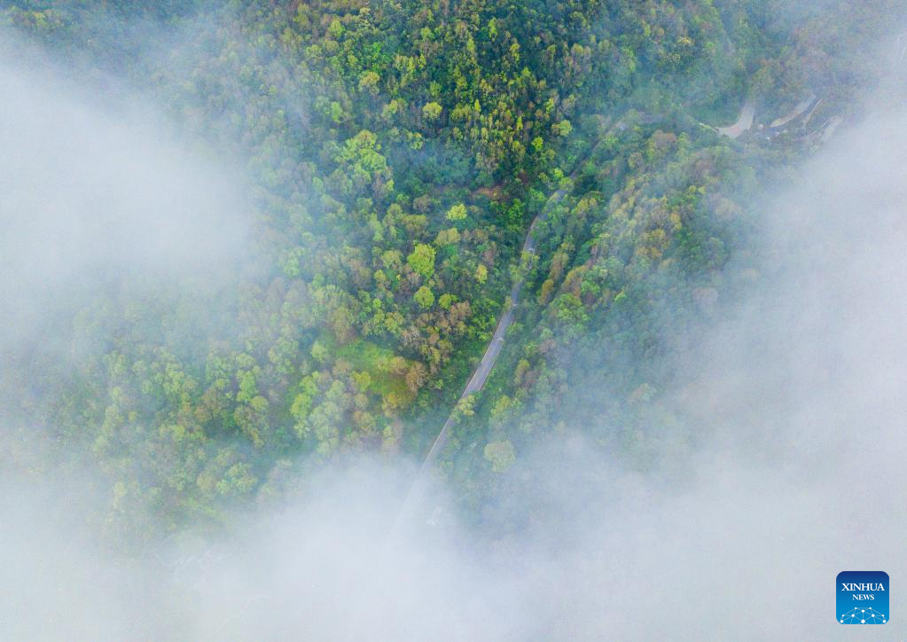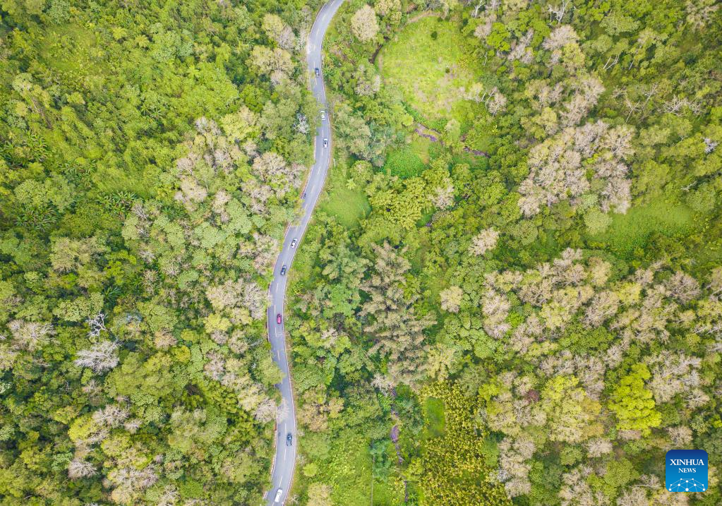 This aerial photo taken on Jan. 26, 2023 shows the Wuzhishan section of the Hainan Tropical Rainforest National Park in Wuzhishan City, south China's Hainan Province. (Xinhua/Pu Xiaoxu)