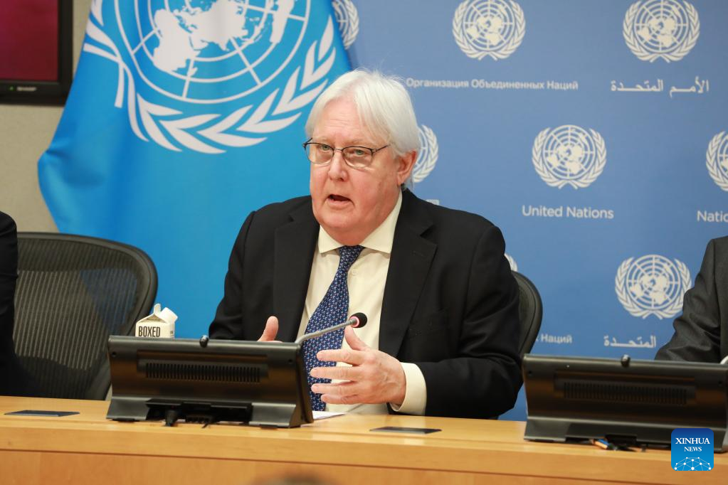 UN Undersecretary-General for Humanitarian Affairs Martin Griffiths speaks at a press briefing on the situation in Afghanistan at the UN headquarters in New York, on Jan. 30, 2023. A mission of the Inter-Agency Standing Committee to Afghanistan has reported positive signs concerning women's rights in the country. (Xinhua/Xie E)