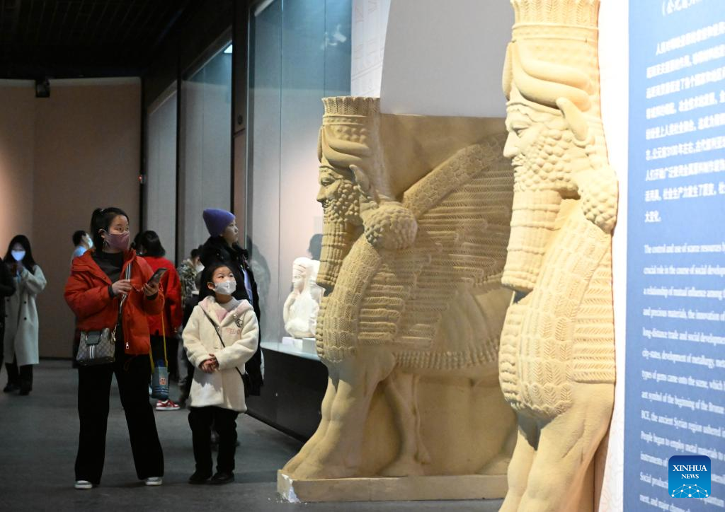 People visit an exhibition of antiquities from ancient Syria at Hebei Museum in Shijiazhuang, north China's Hebei Province, Jan. 31, 2023. (Photo by Chen Qibao/Xinhua)