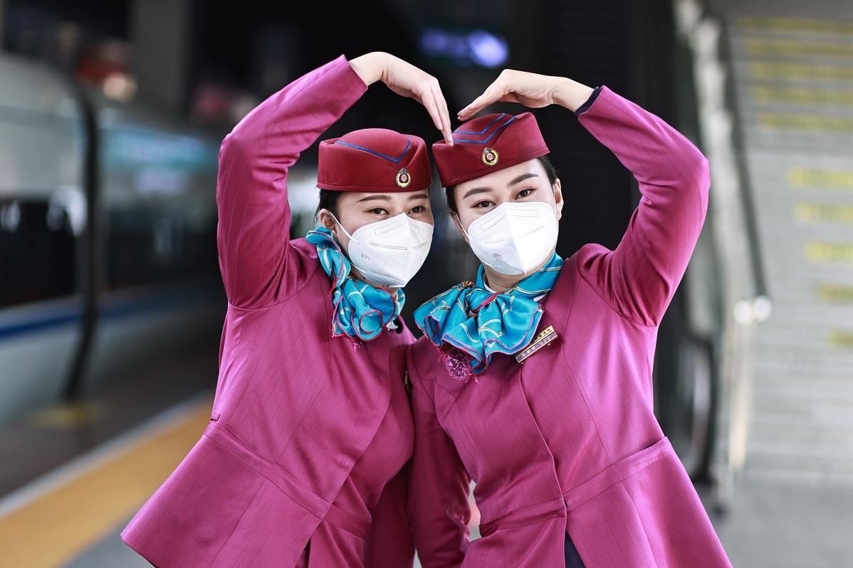 Since 2014, the two have spent every Spring Festival together working on the same train. They always help and cheer on each other, and provide top quality services for passengers.
