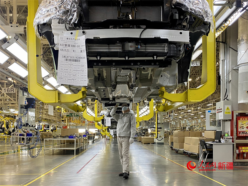 On Jan. 30, workers were busy with jobs at a plant of the Xinjiang branch of Guangzhou Automobile Group Motor Co., Ltd., which is located in the Urumqi Economic and Technological Development Zone.