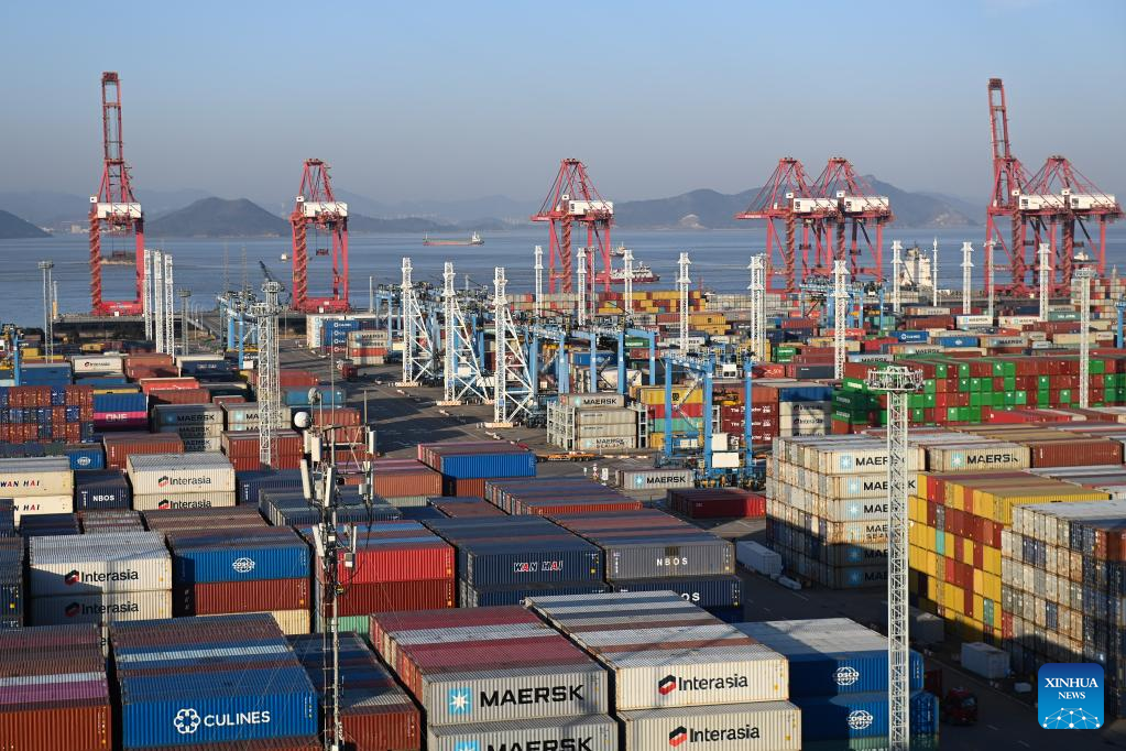 This photo taken on Jan. 31, 2023 shows a container terminal of Ningbo Zhoushan Port in east China's Zhejiang Province. (Xinhua/Huang Zongzhi)
