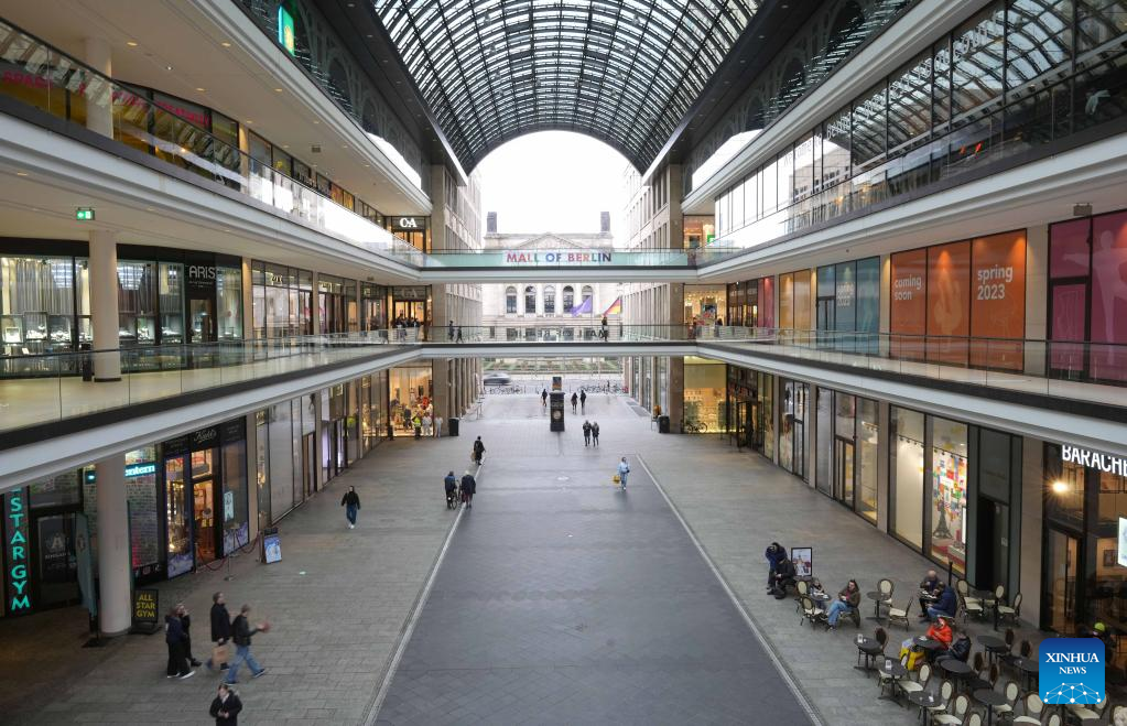 People visit a shopping mall in Berlin, Germany, on Feb. 1, 2023. Annual inflation in the eurozone is projected to fall to 8.5 percent in January from 9.2 percent in December 2022, according to a flash estimate published on Wednesday by Eurostat, the European Union's (EU) statistical bureau. (Photo by Stefan Zeitz/Xinhua)