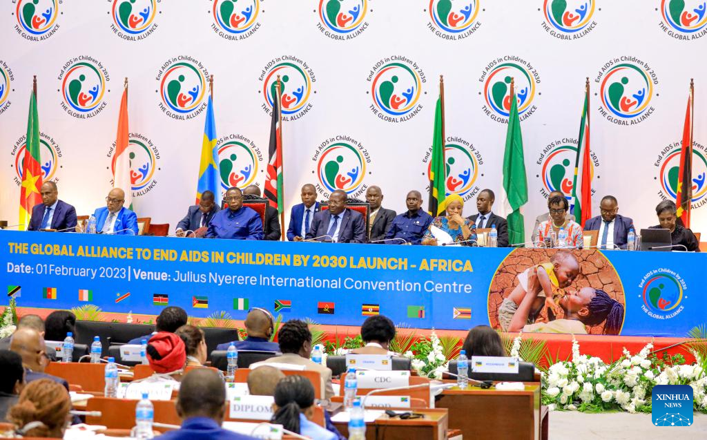 Delegates attend the ministerial launch of the Global Alliance to End AIDS in Children by 2030 in Africa in Dar es Salaam, Tanzania, on Feb. 1, 2023. Tanzanian Vice President Philip Mpango on Wednesday urged African leaders to demonstrate their leadership by renewing their commitment to ending AIDS in children in the continent by 2030. (Office of Vice President of Tanzania/Handout via Xinhua)