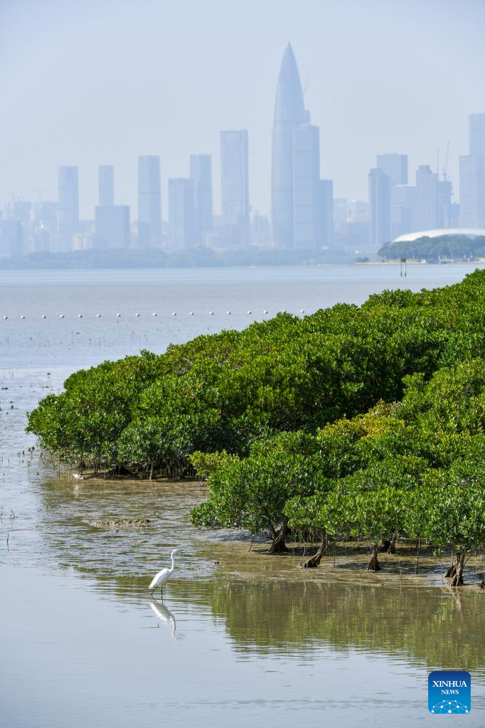 Birds are observed at a mangrove wetland in Futian, Shenzhen, south China's Guangdong Province, Dec. 7, 2022. (Xinhua/Liang Xu)