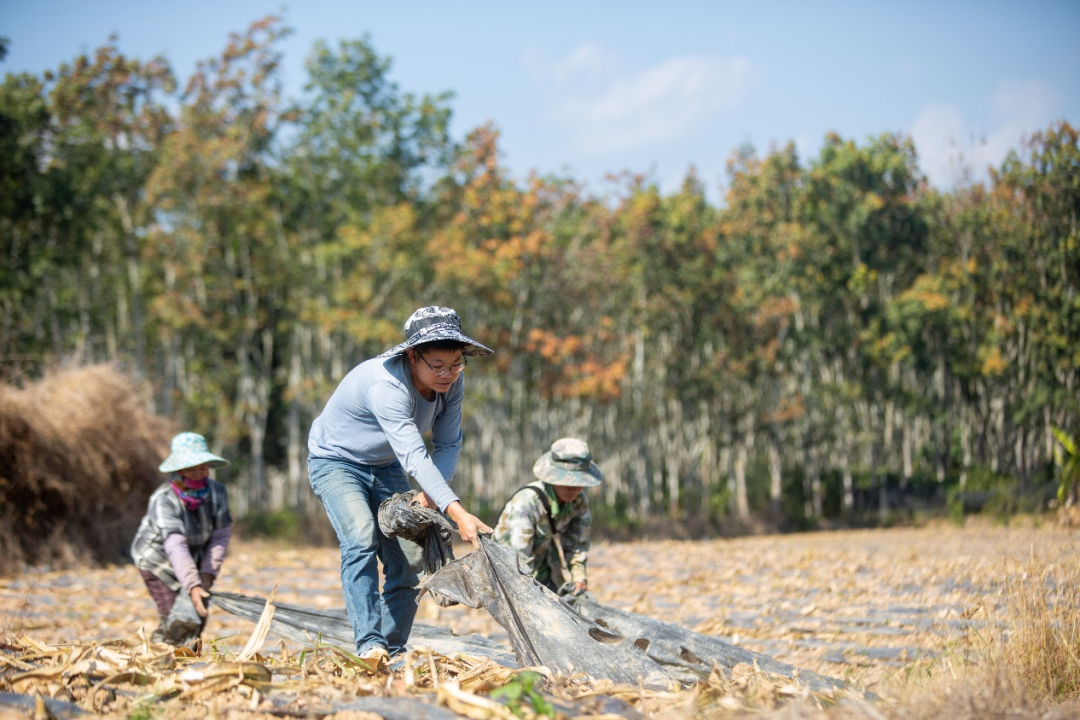 Bo Ji, a 50-year-old Dai villager who rented out his land to Xiong, works at his corn planting base.