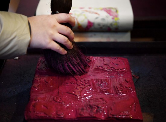 An artist makes woodblock New Year paintings at the Wuqiang woodblock New Year painting museum in Wuqiang County, north China's Hebei Province, Feb. 3, 2023. (Xinhua/Mu Yu)