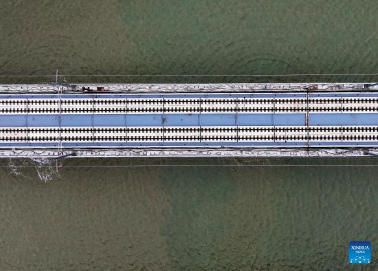 This aerial photo taken on Feb. 4, 2023 shows the Quanzhou Bay cross-sea bridge, a part of the Fuzhou-Xiamen high-speed railway, in southeast China's Fujian Province.