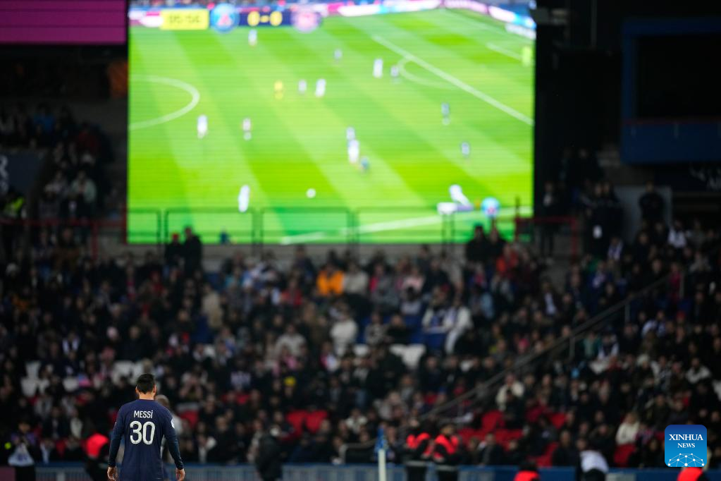 Paris Saint-Germain's Lionel Messi competes during a French Ligue 1 football match between Paris Saint-Germain (PSG) and Toulouse FC in Paris, France, Feb. 4, 2023. (Photo by Glenn Gervot/Xinhua)