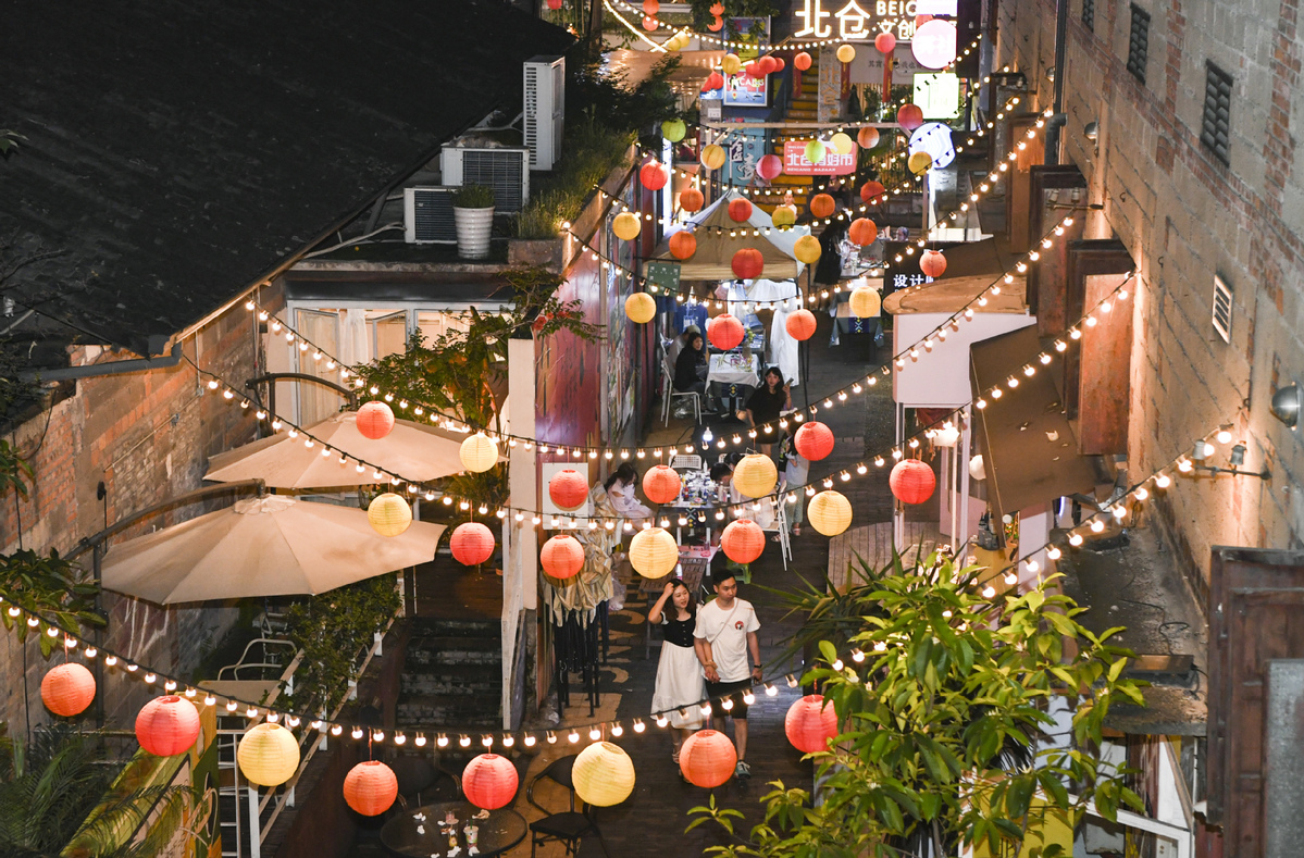 People visit the Beicang Cultural and Creative Block in southwest China's Chongqing municipality, June 3, 2022. [Photo/Xinhua]