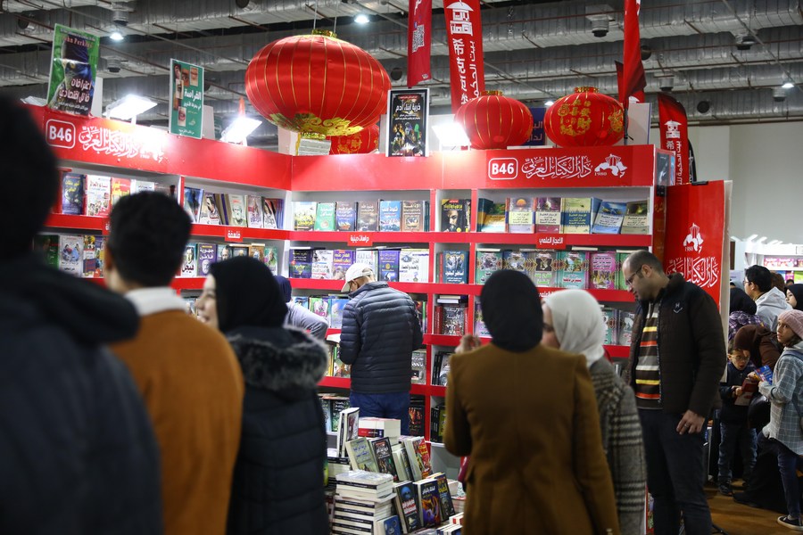 CAIRO, Feb. 5 (Xinhua) -- Decorated with Chinese-style red lanterns, the pavilion of translated Chinese books saw a big turnout of book lovers at the 54th edition of Cairo International Book Fair (CIBF), the largest book fair in the country.
