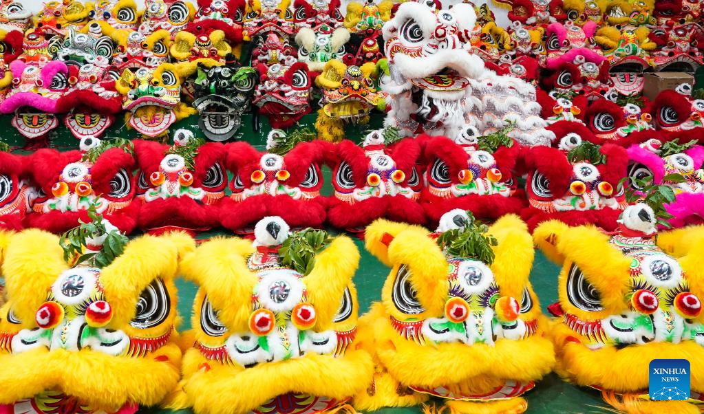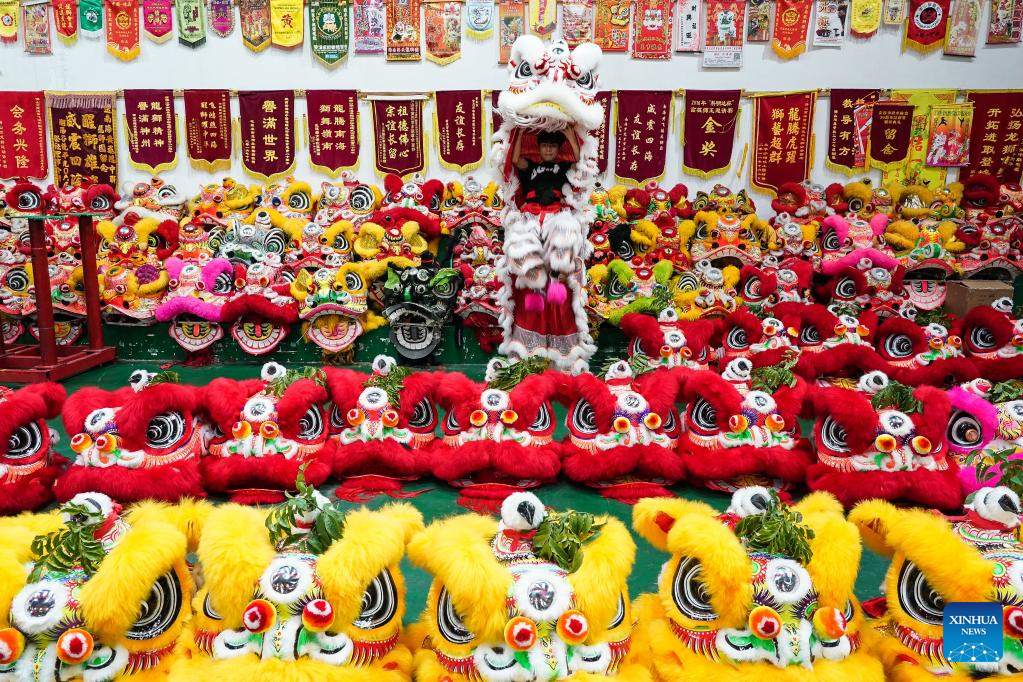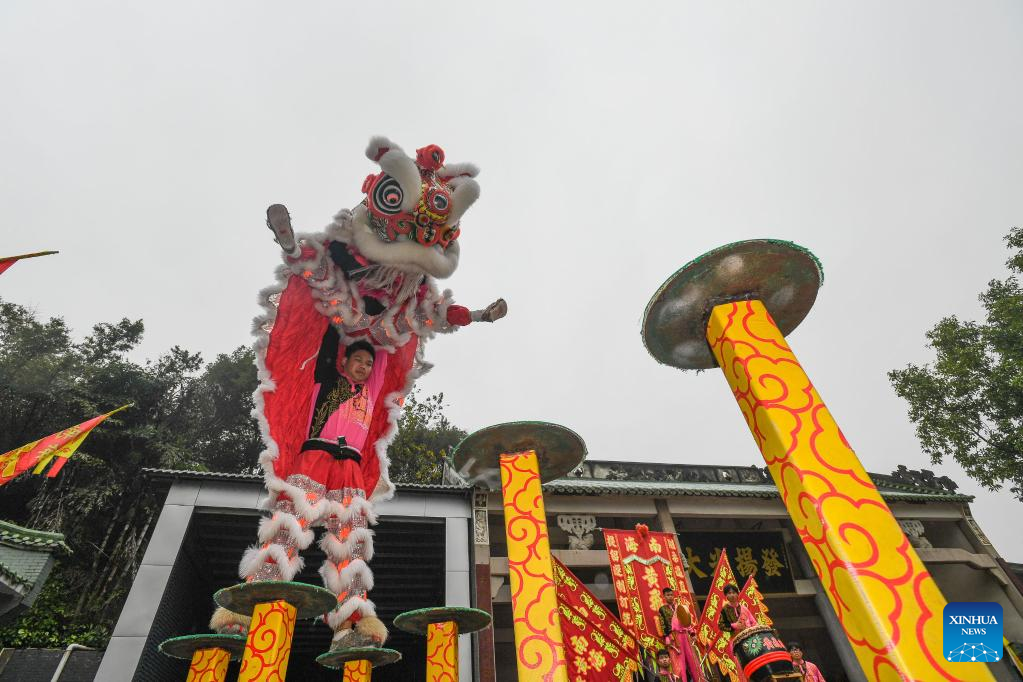 Guangdong Lion Dancers perform in Foshan, south China's Guangdong Province, Jan. 12, 2023. (Xinhua/Liu Dawei)