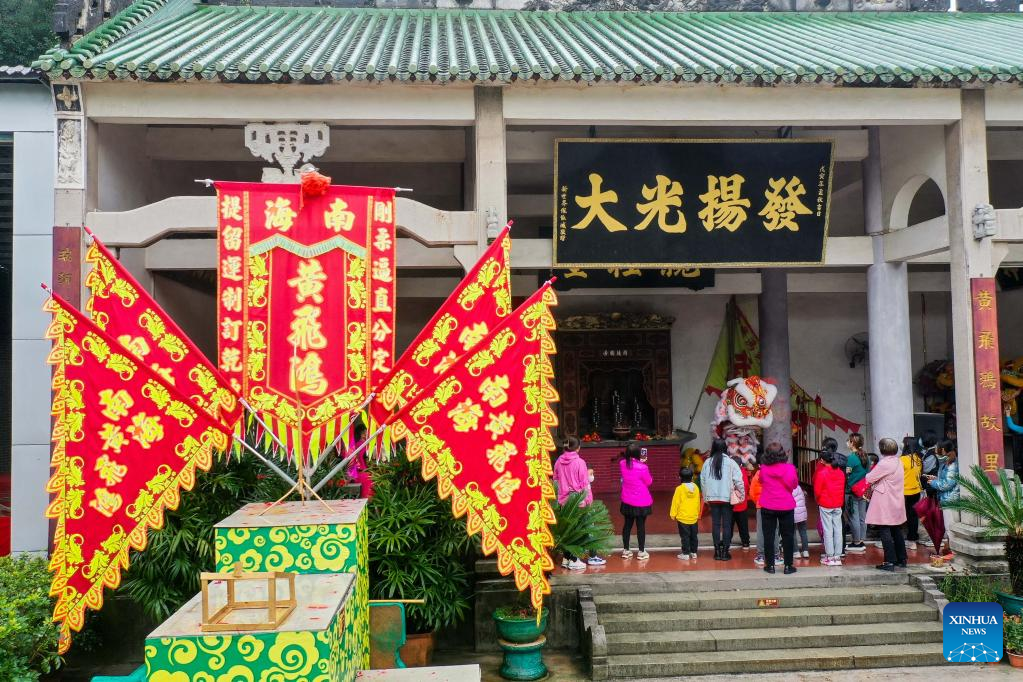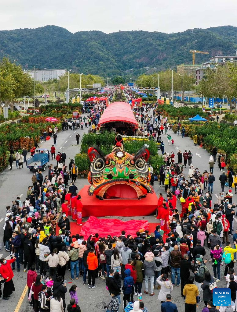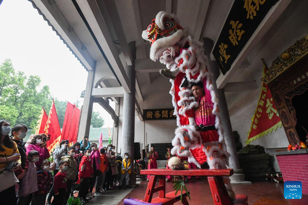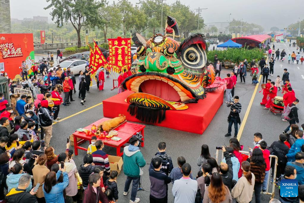 Tourists enjoy a Guangdong Lion Dance show in Foshan, south China's Guangdong Province, Jan. 12, 2023. (Xinhua/Liu Dawei)