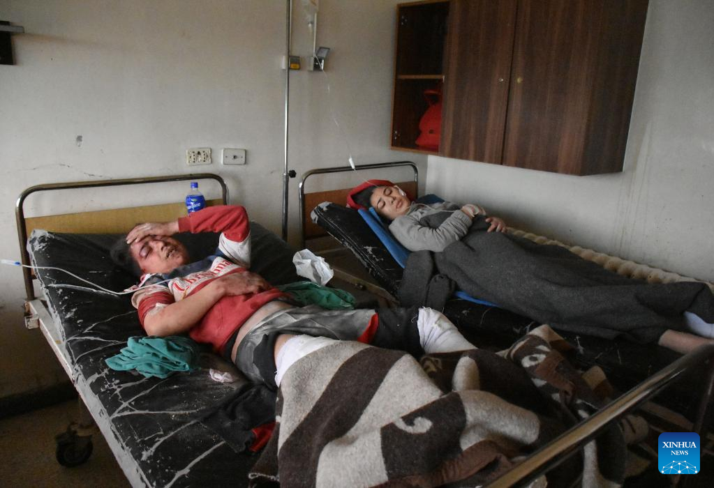 People injured in a powerful earthquake are treated at a hospital in Hama province, Syria, on Feb. 6, 2023. According to the Syrian health ministry and the Britain-based pro-rebel Syrian Observatory for Human Rights, a 7.7-magnitude earthquake jolted the northern Syrian provinces of Latakia, Tartous, Hama, Aleppo, and Idlib on Monday, killing at least 870 and injuring 1,326. (Str/Xinhua)