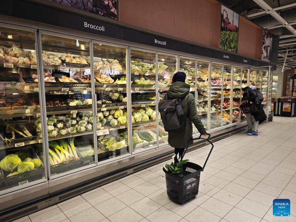 A customer shops at a store in Stockholm, Sweden, on Feb. 6, 2023. Inflation continues to hover at lofty levels in Sweden with food prices registering the largest monthly increases in a year, according to a report released here on Monday. (Photo by Wei Xuechao/Xinhua)