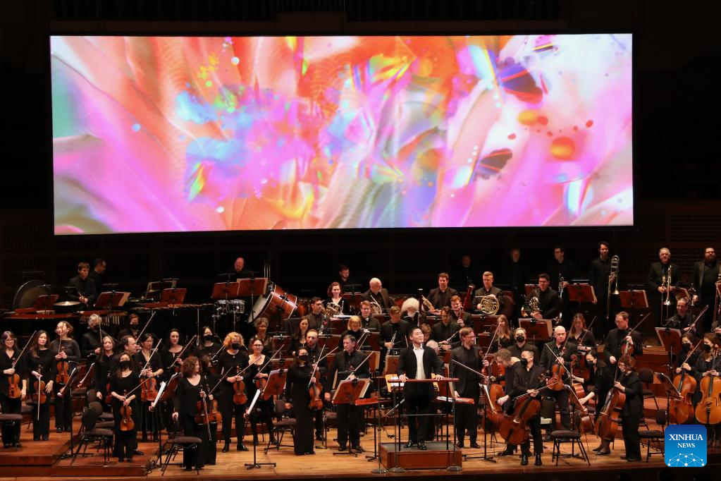 A concert in celebration of the Chinese Lunar New Year is staged by the San Francisco Symphony at Davies Symphony Hall in San Francisco, California, the United States, Feb. 5, 2023. (Photo by Liu Yilin/Xinhua)