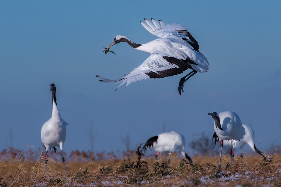 Photo shows migratory birds foraging at a rare bird national nature reserve in Yancheng, east China’s Jiangsu Province, in the morning. (Photo courtesy of Yancheng Wetland and World Natural Heritage Conservation and Management Center)