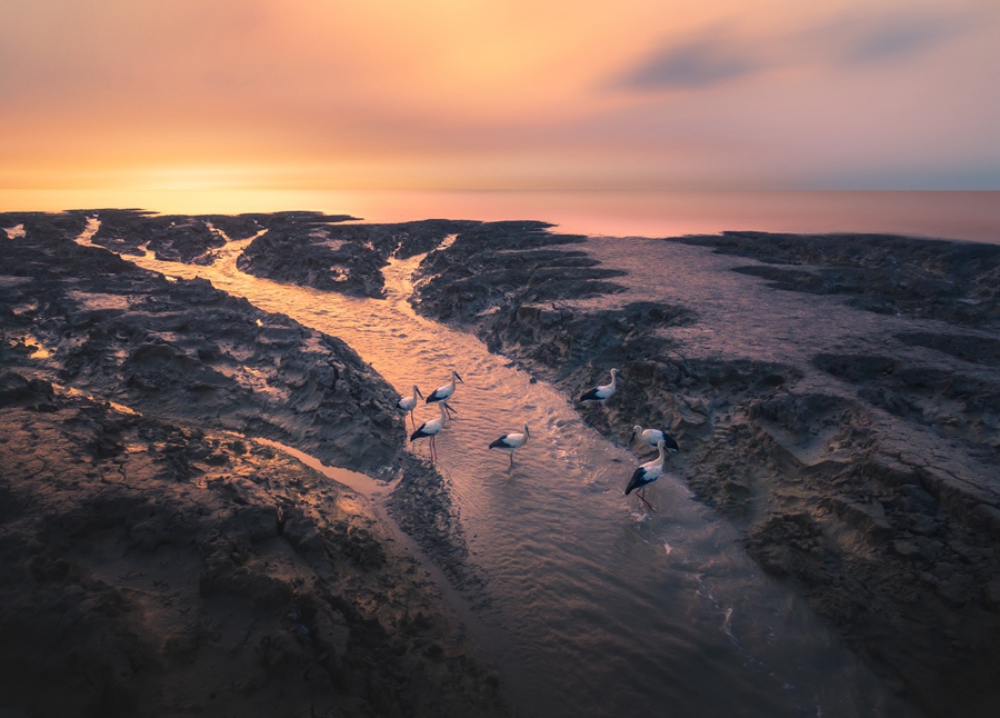 Photo shows migratory birds resting at a wetland in Yancheng, east China’s Jiangsu Province. (Photo courtesy of Yancheng Wetland and World Natural Heritage Conservation and Management Center)