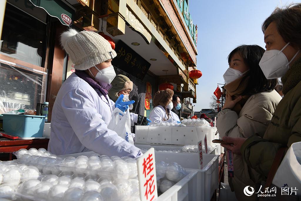 Citizens buy yuanxiao, sweet glutinous rice dumplings eaten during the Lantern Festival, at a restaurant in Beijing on Feb. 3, 2023. (People’s Daily Online/Wang Xiaoxiao)