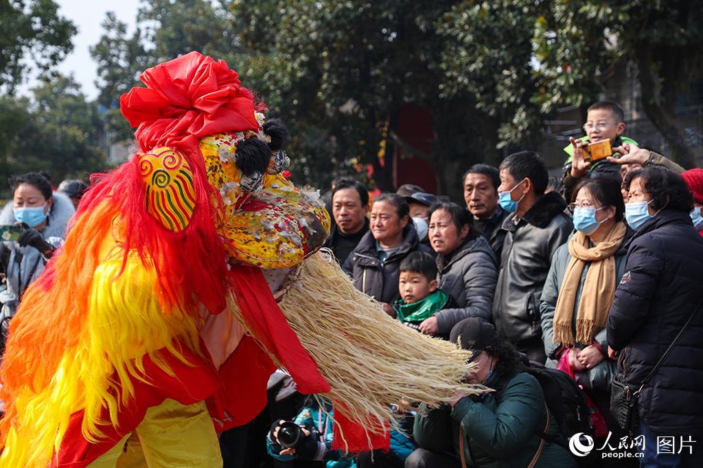 Visitors crowd to watch a lion dance in Nanling county, east China’s Anhui Province, on Feb. 4, 2023. (People’s Daily Online/Zhang Jun)
