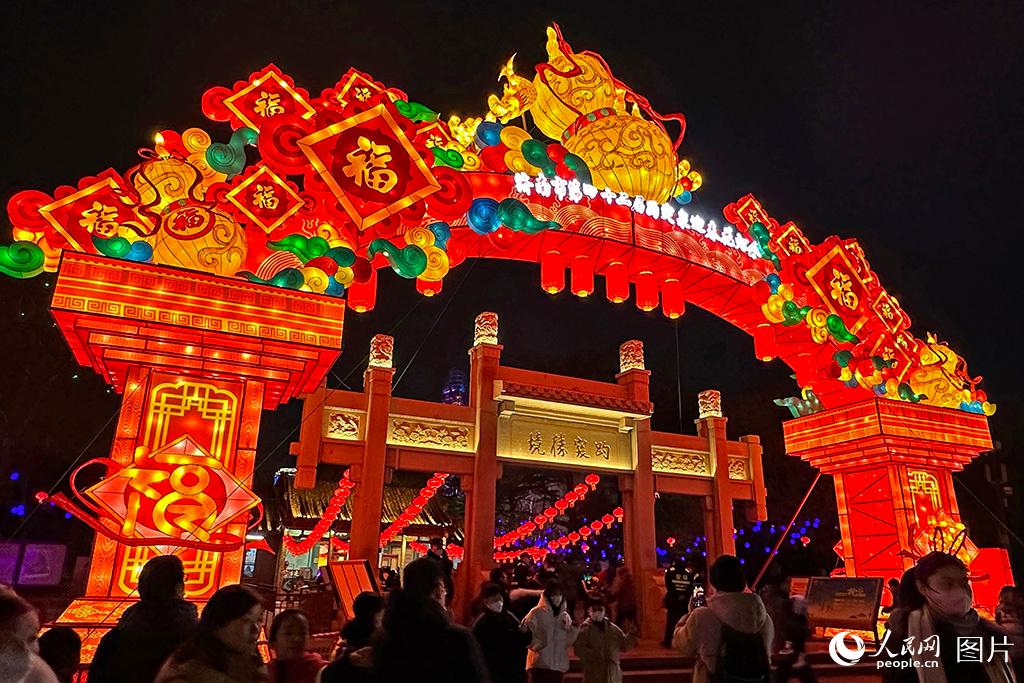 A lantern show in Baotu Spring Park attracts crowds of visitors in Jinan, north China’s Shandong Province, on Feb. 2, 2023. (People’s Daily Online/Qiao Shu)