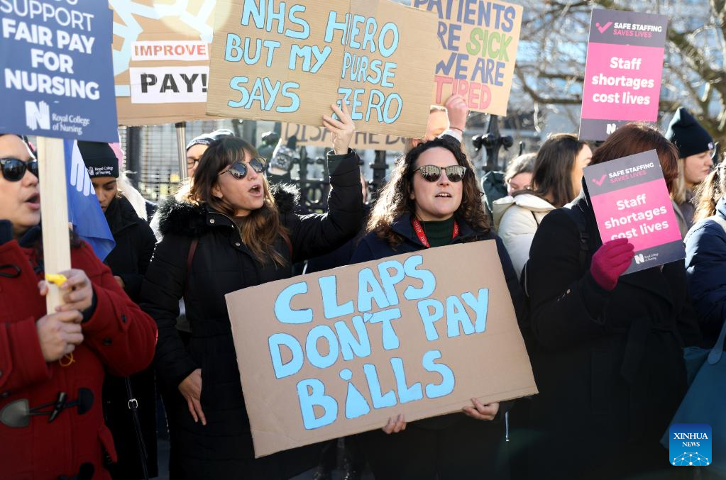 LONDON, Feb. 6 (Xinhua) -- Nurses and ambulance workers in Britain on Monday started another round of strikes in the thick of lengthy and intensifying disputes over payment.