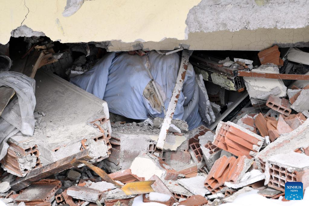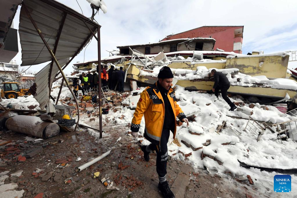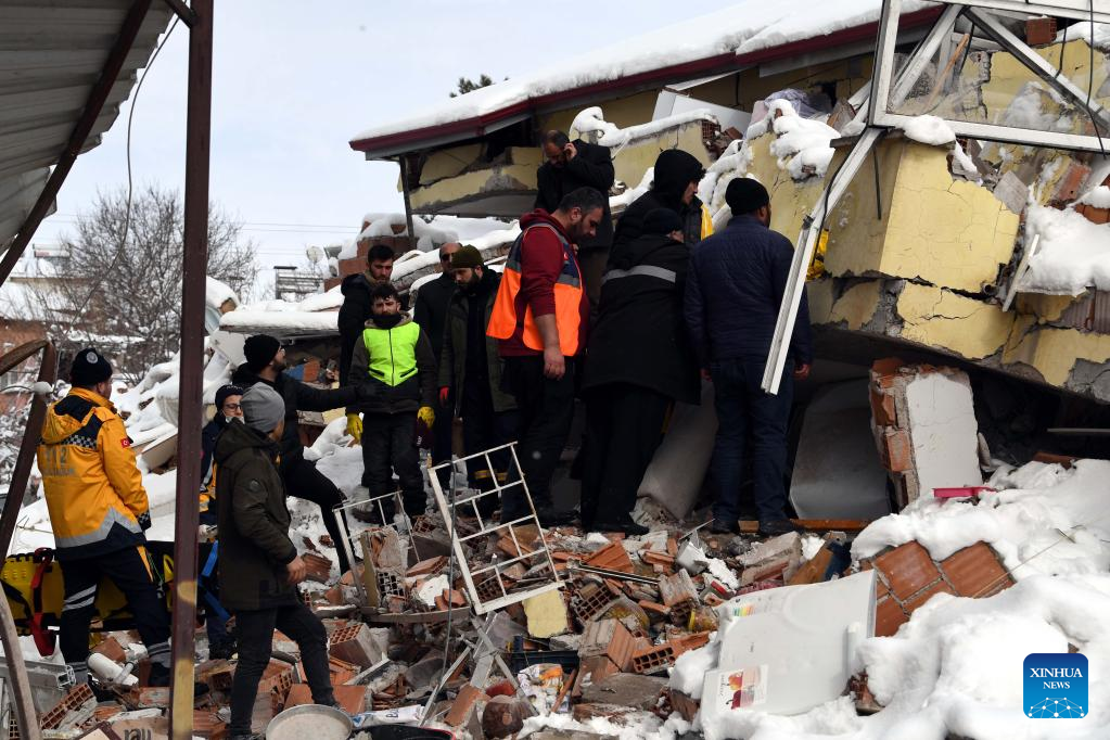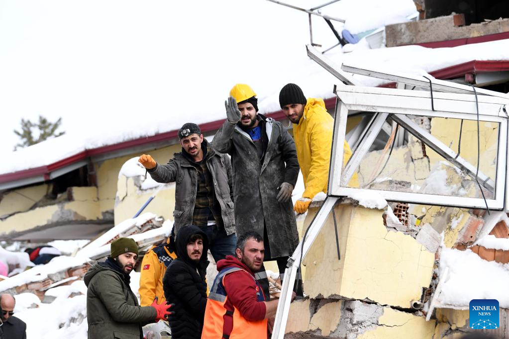 ANKARA, Feb. 7 (Xinhua) -- Rescuers in quake-hit Trkiye are beating the clock and battling heavy rain to save survivors from rubbles on Tuesday, as more than 24 hours have passed since massive earthquakes wreaked havoc in the country's southeast.