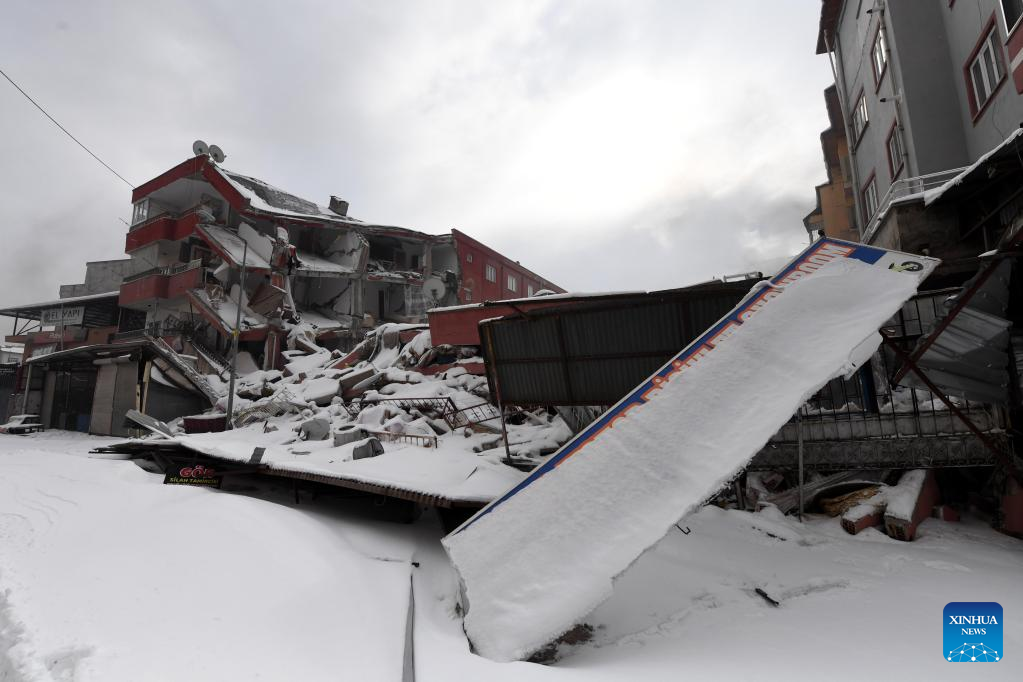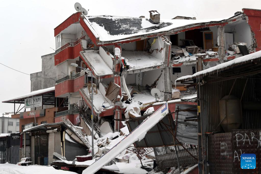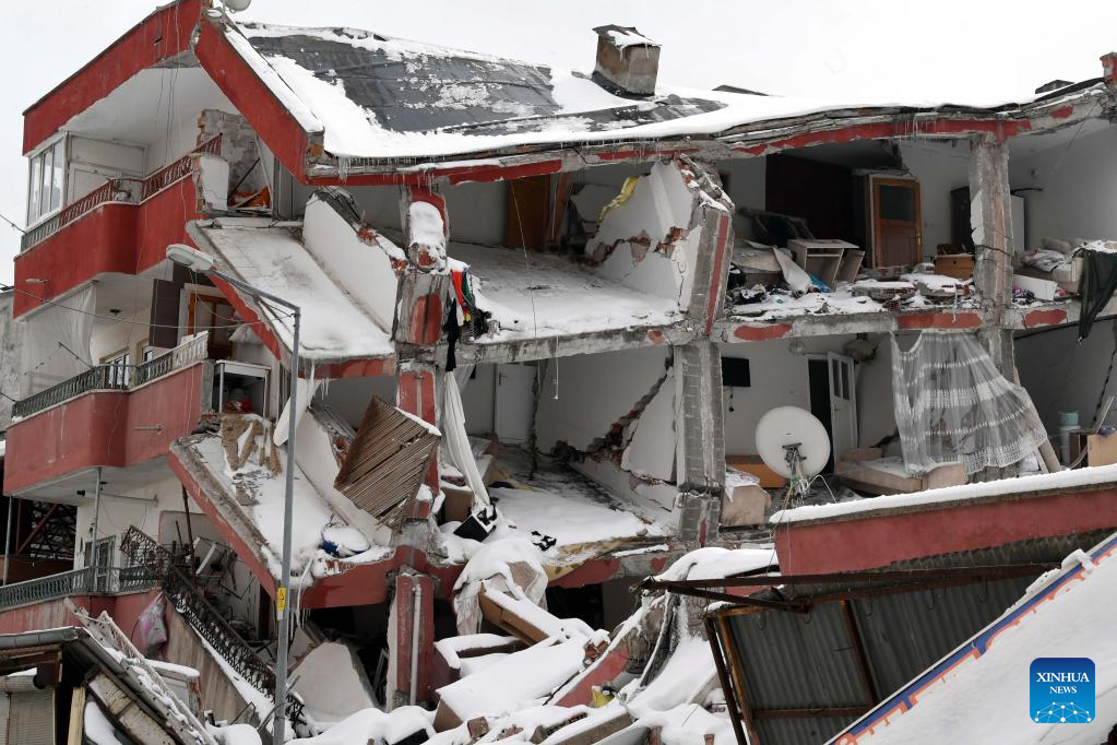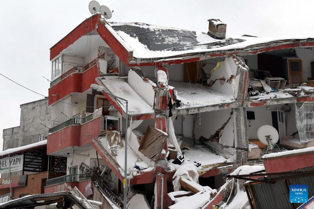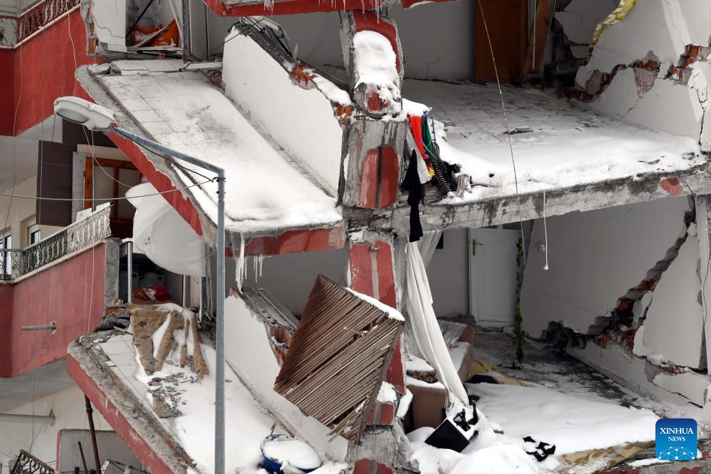 This photo taken on Feb. 7, 2023 shows a damaged building in Elbistan district of Kahramanmaras Province, Trkiye. (Xinhua/Shadati)
