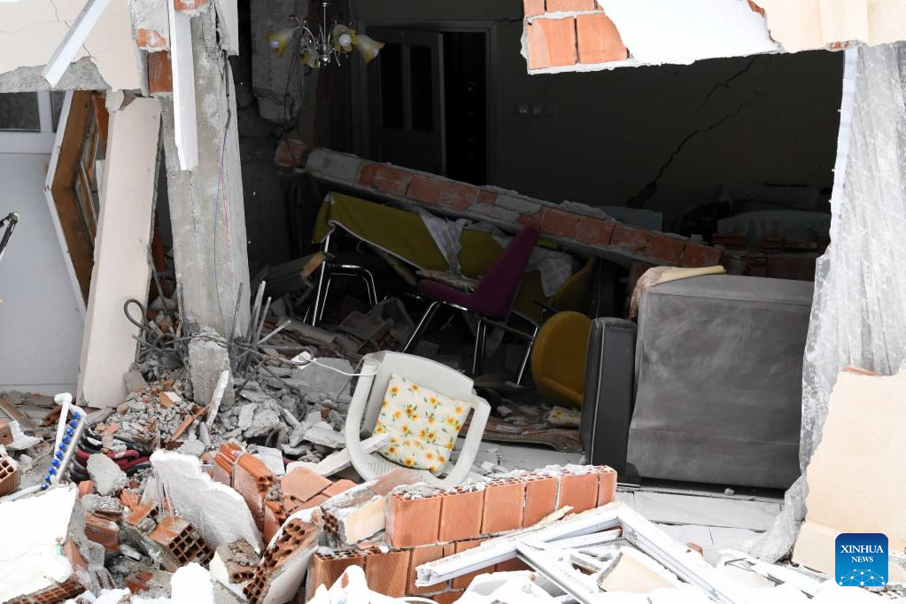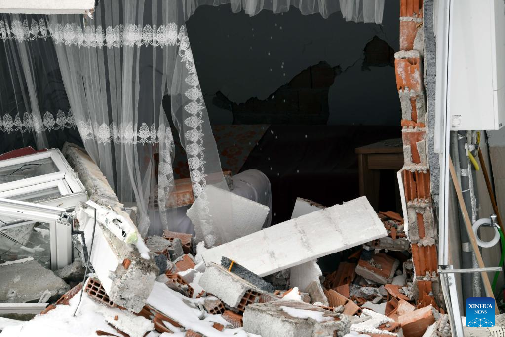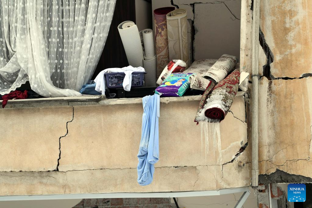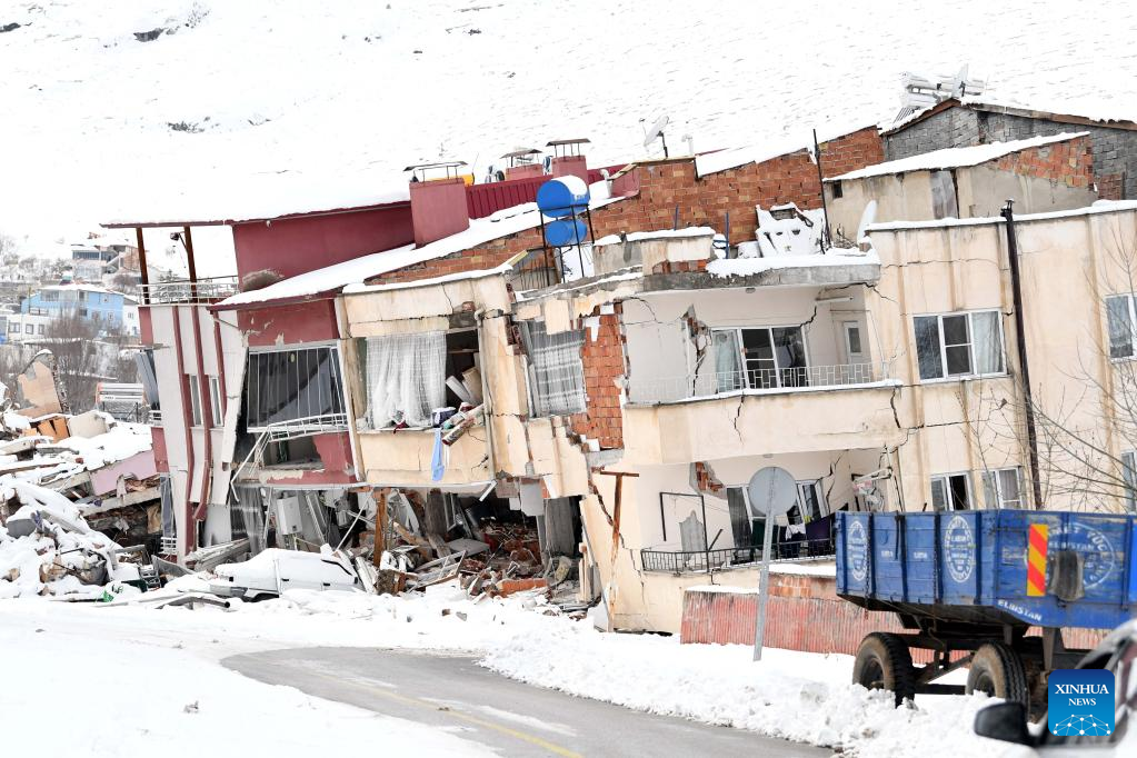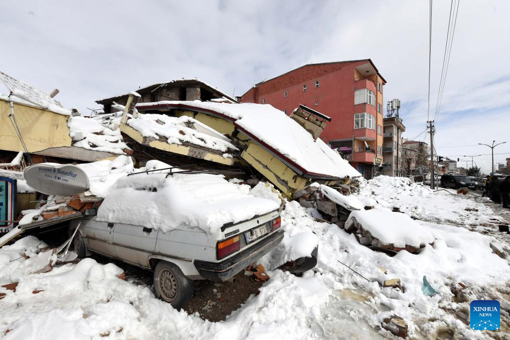 This photo taken on Feb. 7, 2023 shows a damaged building in Elbistan district of Kahramanmaras Province, Trkiye. (Xinhua/Shadati)