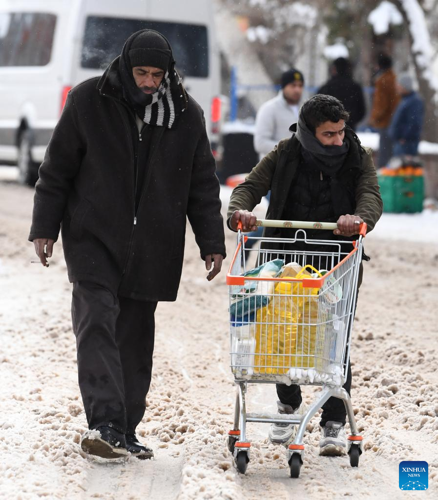 Residents transport supplies in Elbistan district of Kahramanmaras Province, Trkiye, Feb. 7, 2023. (Xinhua/Shadati)