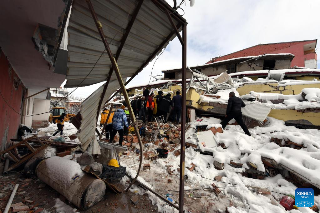People conduct rescue work in Elbistan district of Kahramanmaras Province, Trkiye, Feb. 7, 2023. (Xinhua/Shadati)