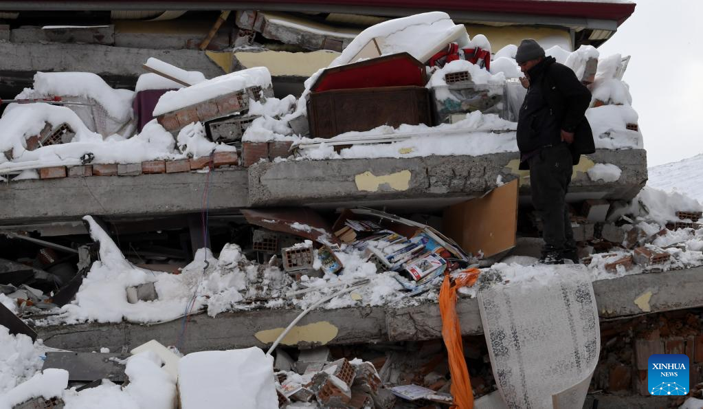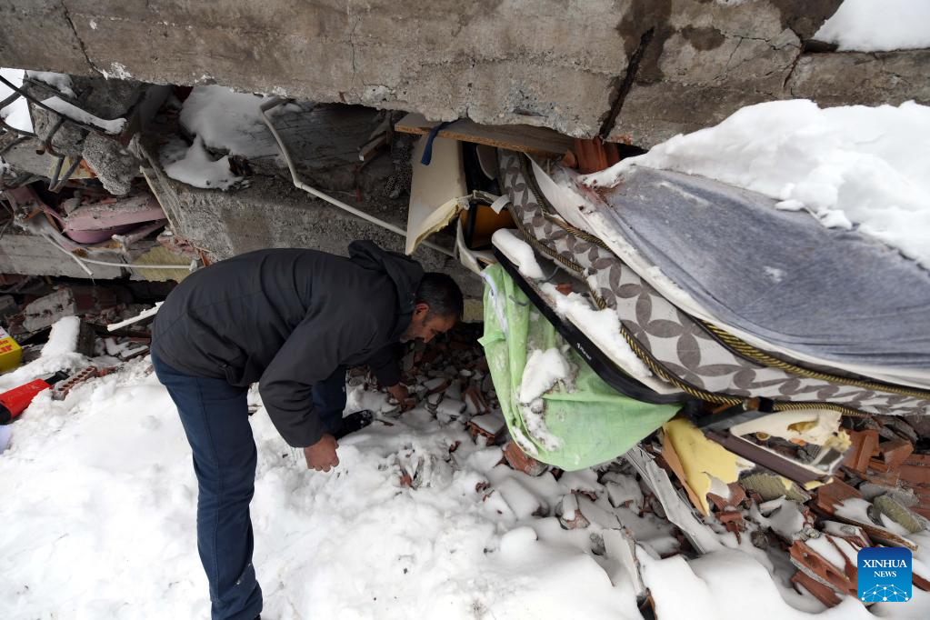 A resident searches for his relatives in a damaged building in Elbistan district of Kahramanmaras Province, Trkiye, Feb. 7, 2023. (Xinhua/Shadati)