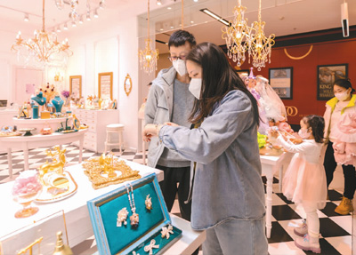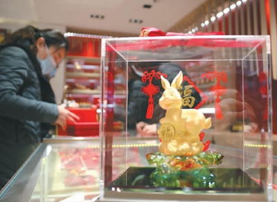 Gold jewelry retailers at Gongmei Emporium in downtown Beijing’s Wangfujing Street held a number of promotions for shoppers. According to an employee of Gongmei Emporium, sales revenues of its own gold brands approached 10 million yuan (about $1.47 million) during the two holidays, with rabbit-themed gold bars and jewelry products being particularly popular.