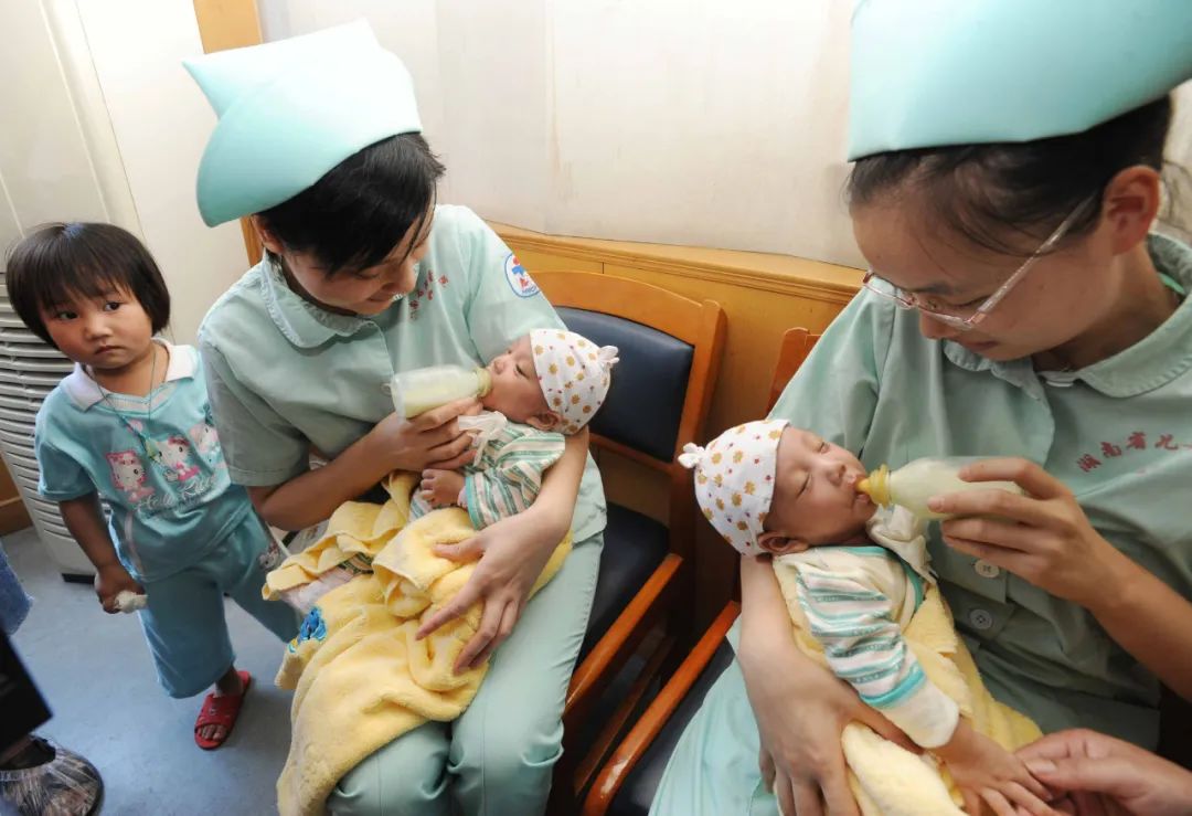 Nurses feed the twin sisters at Hunan Children's Hospital in Changsha, Hunan province, on June 18, 2009. [Photo/Xinhua]