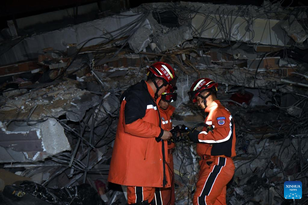 Members of the China Search and Rescue Team are in operation on earthquake debris in the southern province of Hatay, Trkiye, Feb. 8, 2023. (Xinhua/Shadati)