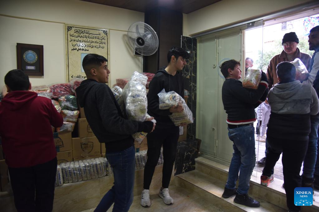 Volunteers transfer donations for quake-hit Syrian city of Latakia in Tripoli, Lebanon, on Feb. 9, 2023. According to data released by authorities and rescuers, the death toll from Monday's devastating earthquake in Trkiye and Syria has surpassed 17,000. (Photo by Khaled Habashiti/Xinhua)