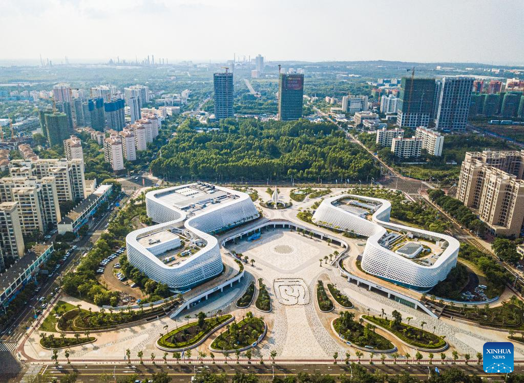 This aerial photo taken on Sept. 25, 2022 shows a view of the Yangpu Economic Development Zone in south China's Hainan Province. In 2022, the key parks of Hainan Free Trade Port completed a total investment in fixed assets of 126.15 billion yuan (about 18.62 billion U.S. dollars), a year-on-year increase of 6.6 percent. The accumulated operating income was 1.82 trillion yuan (about 269.32 billion U.S. dollars), a year-on-year increase of 31.6 percent. (Xinhua/Pu Xiaoxu)