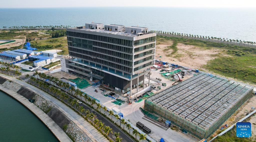 This aerial photo taken on Oct. 16, 2022 shows the construction site of the quarantine and inspection area on the transfer base for global animal and plant germplasm resources in Yazhou Bay Science and Technology City in Sanya, south China's Hainan Province. In 2022, the key parks of Hainan Free Trade Port completed a total investment in fixed assets of 126.15 billion yuan (about 18.62 billion U.S. dollars), a year-on-year increase of 6.6 percent. The accumulated operating income was 1.82 trillion yuan (about 269.32 billion U.S. dollars), a year-on-year increase of 31.6 percent. (Xinhua/Yang Guanyu)