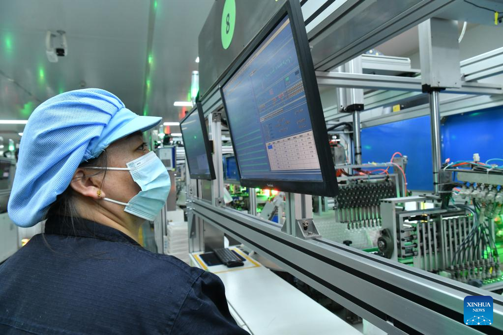 A worker assembles equipment in the workshop of Naknor Technology in Xingtai, north China's Hebei Province, on Feb. 6, 2023. Hebei Province has focused on improving the innovation ability of small and medium enterprises and adopted a series of measures to support them. (Xinhua/Mu Yu)