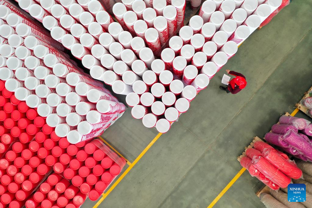 Workers are seen in the production line at a kitchenware company in Shahe, north China's Hebei Province, on Feb. 6, 2023. Hebei Province has focused on improving the innovation ability of small and medium enterprises and adopted a series of measures to support them. (Xinhua/Mu Yu)