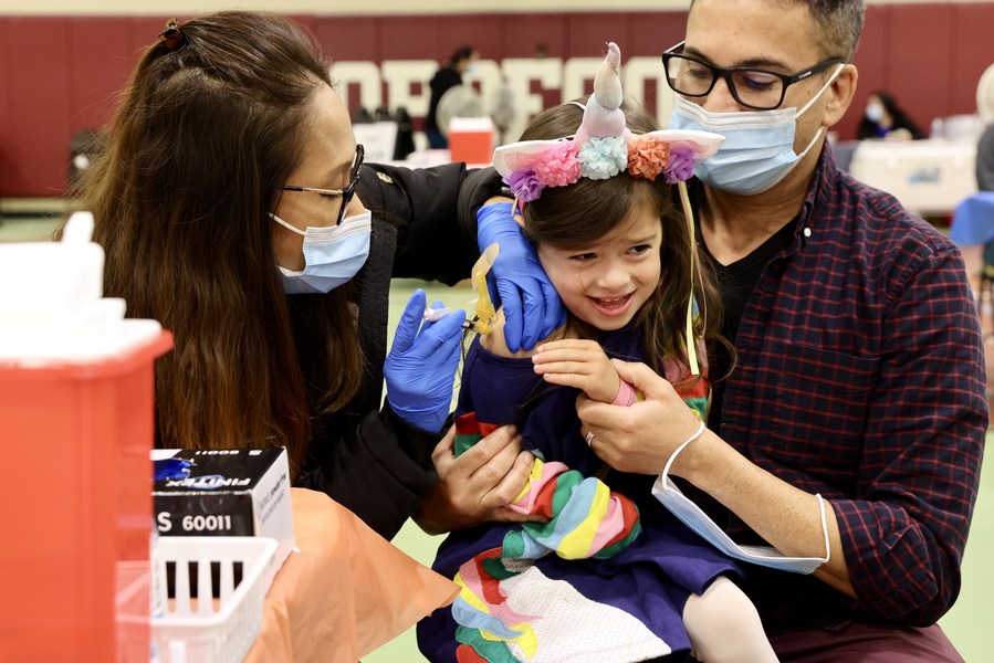 A child receives a COVID-19 vaccine shot in Los Angeles, the United States, on Dec. 17, 2022. (Xinhua)