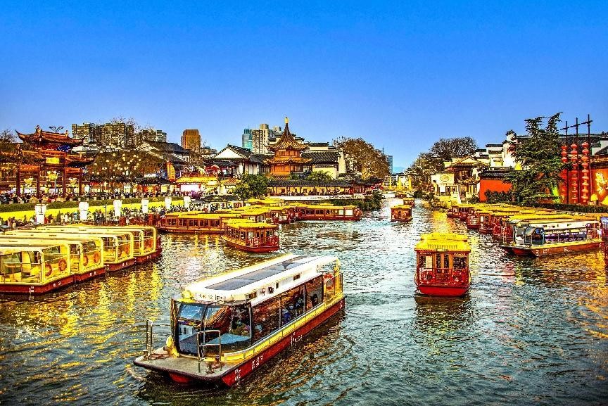 Tourists take a boat cruise along the Qinhuai River in Nanjing, east China's Jiangsu province, Jan. 24, 2023. (People's Daily Online/Gu Changwang)