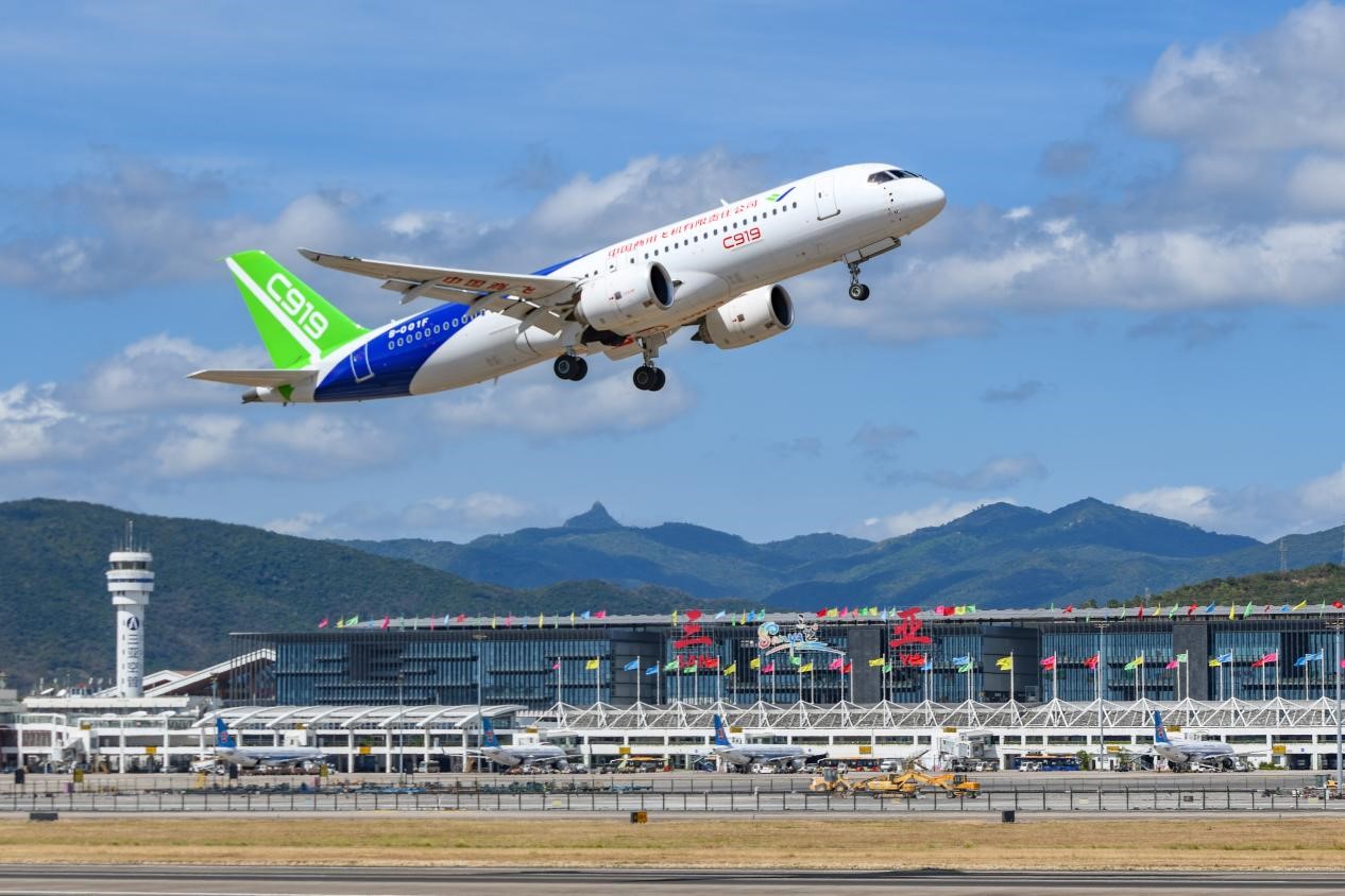 China's domestically-developed C919 large jetliner takes off from the Sanya Phoenix International Airport, south China's Hainan province, and heads for Harbin, northeast China's Heilongjiang province, Feb. 8, 2023. (People's Daily Online/Wang Chenglong)